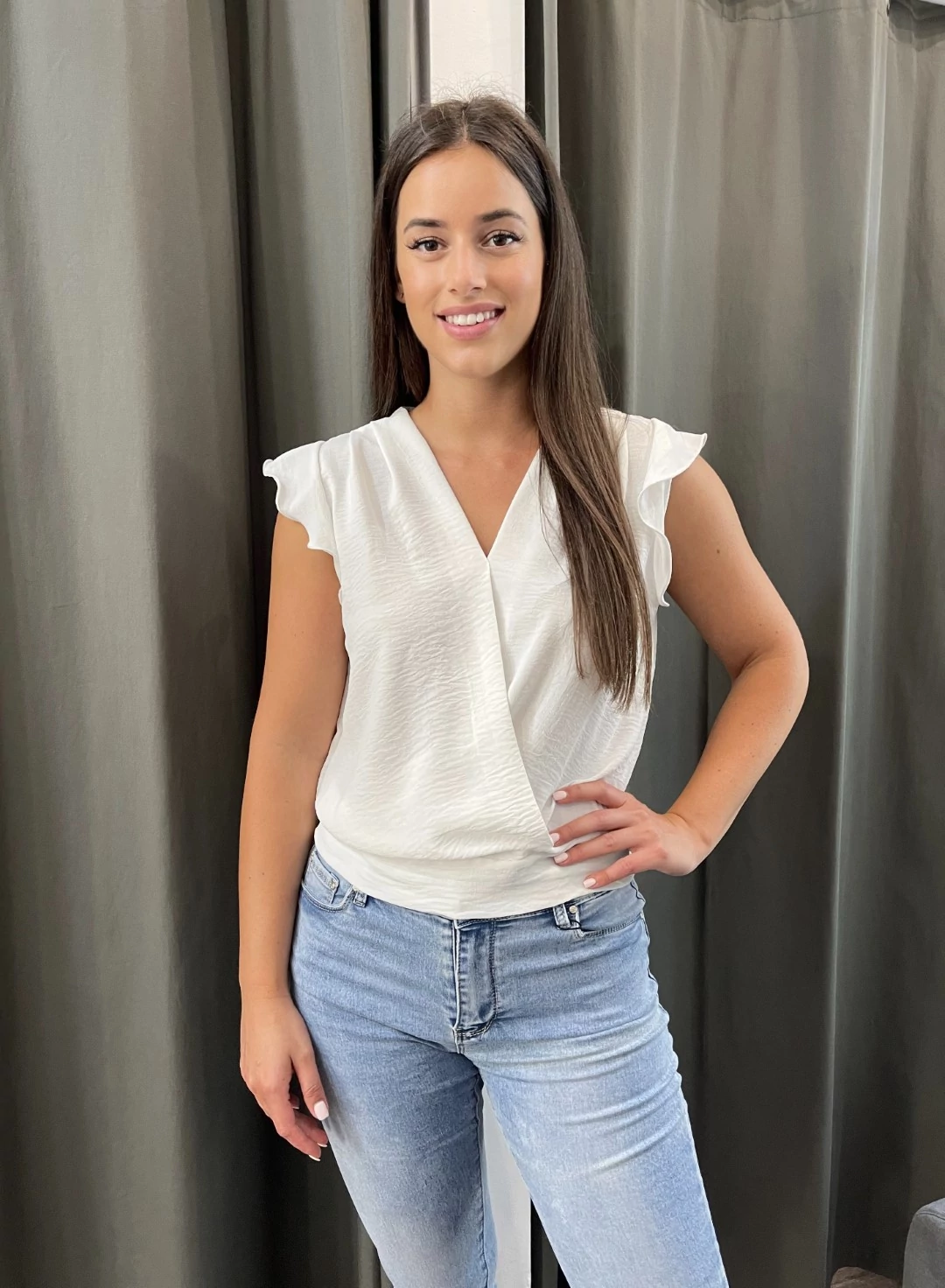 Anyagösszetétel: 95% poliészter 5% elasztán Mellbőség 50 cm, teljes hossza 55 cm. A modell 171 cm magas.