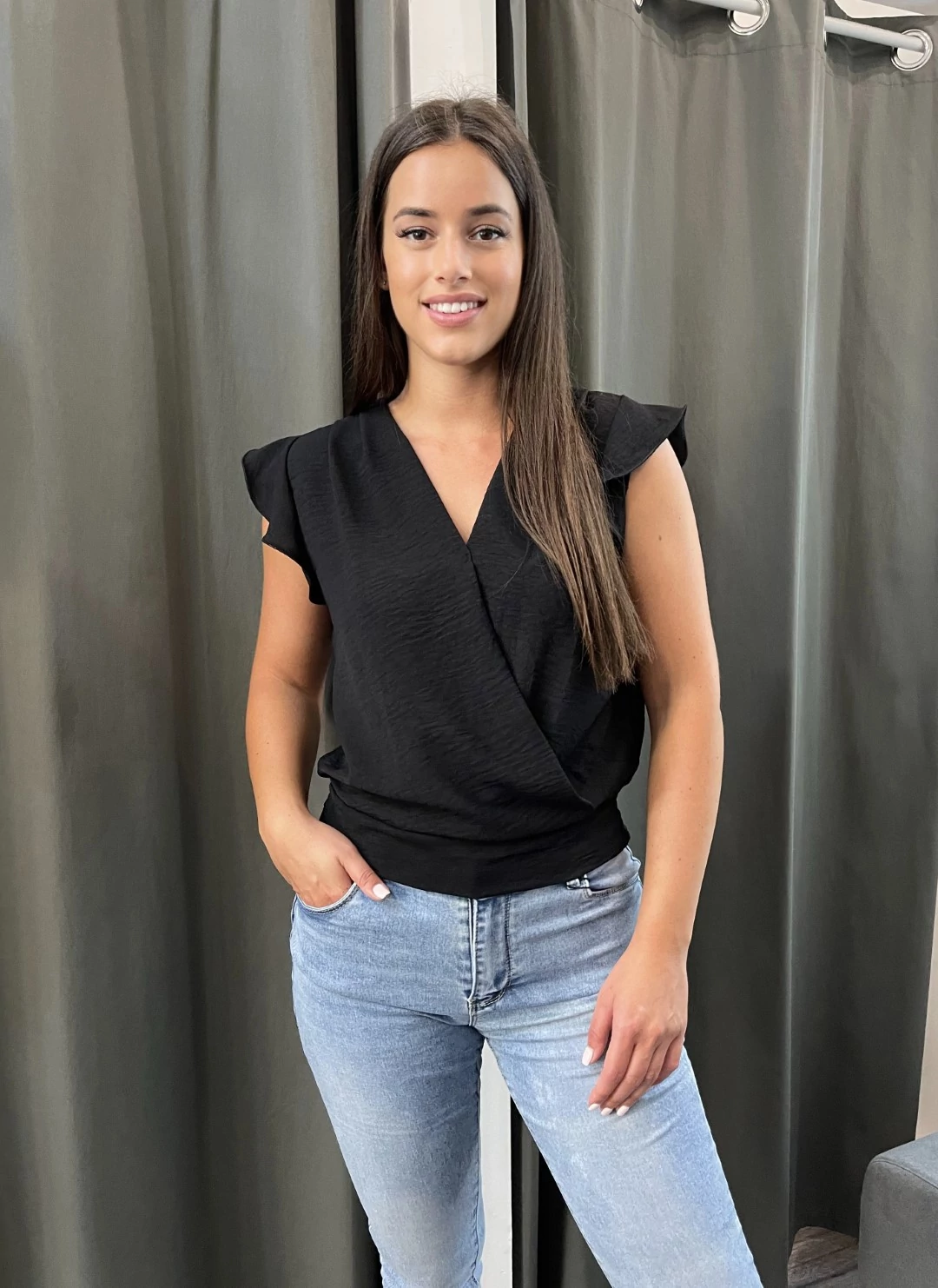 Anyagösszetétel: 95% poliészter 5% elasztán Mellbőség 50 cm, teljes hossza 55 cm. A modell 171 cm magas.
